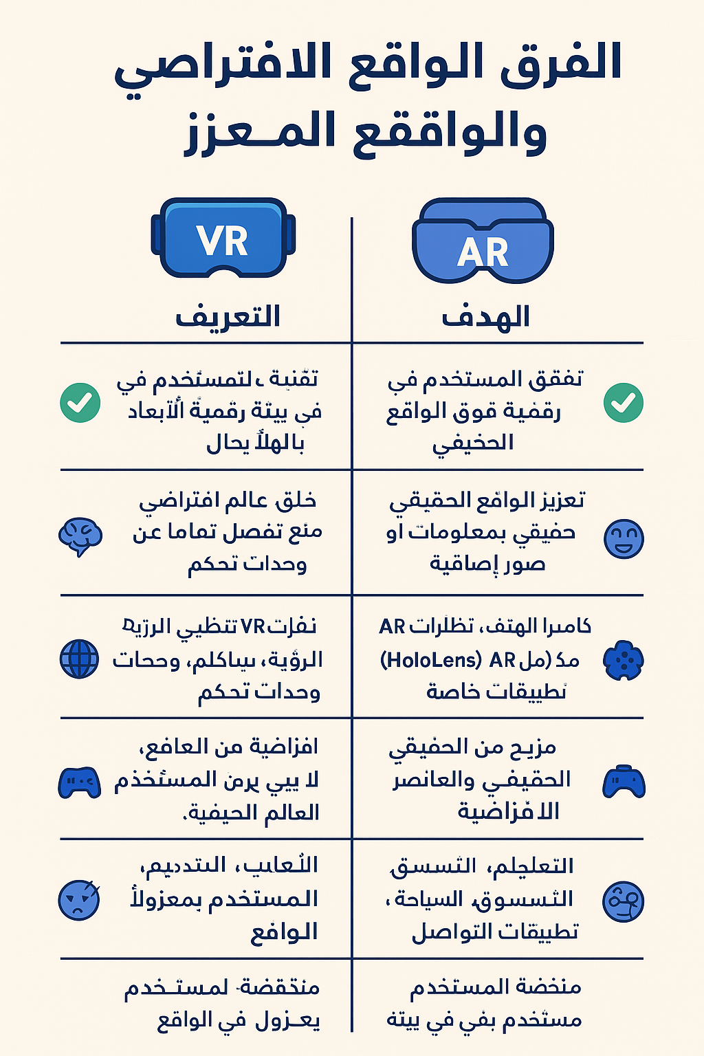 مقارنة واضحة بين الواقع الافتراضي (VR) والواقع المعزز (AR)